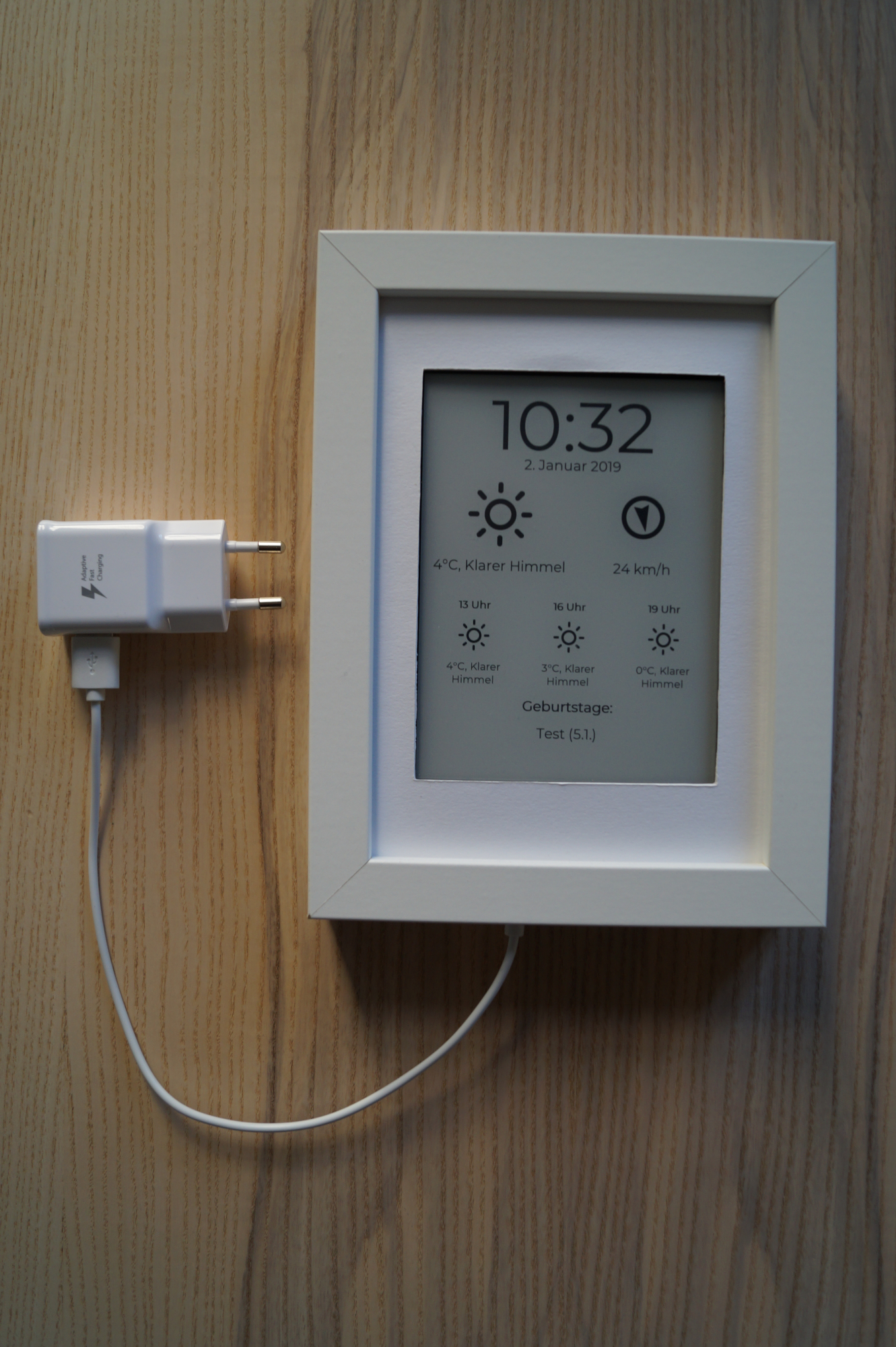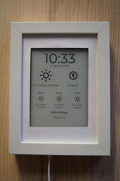 As mentioned before, we’ll use the integrated browser of the Kindle to display things. In order to do so, I wrote a small website, which displays the current weather, forecast and upcoming birthdays. You can find it here. Please refer to the project’s README.md on how to get the website up and running.