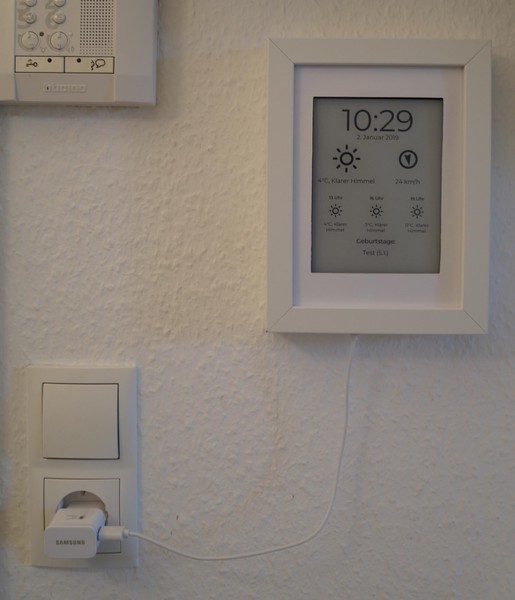 One thing led to another, and a few moments later I found myself searching the web for a possibility to mount a kindle on the wall. This seems to be a rather rare usecase and I was not able to find anything on that topic. Luckily, I had a small frame from Ikea laying around unused, in which the kindle could fit with a few adjustments.